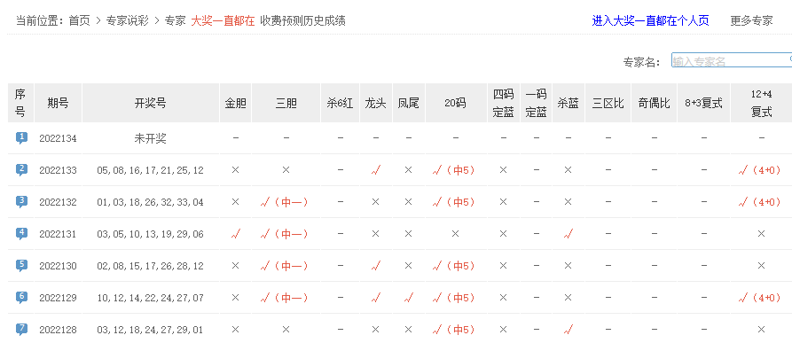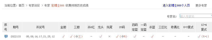 大奖一直都在、大圣看彩、东方红太阳、东郭不是先生、福胆、江小白、人工智慧、神豪小马哥、圣地小石头、西子彩民、预测直通车、ema123等专家命中5红。