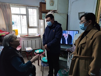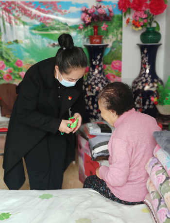 11月10日在属地民强社区开展了“福彩进社区,公益惠万家”福彩公益行主题党日活动,市福彩中心党支部书记带领全体党员来到民强社区两位低保户家中,亲切地和低保户交谈,详细询问、了解她们的身体状况和家庭近况。同时向她们赠送冬被,表达了党和福彩事业对她们的关爱。