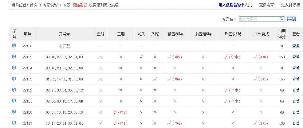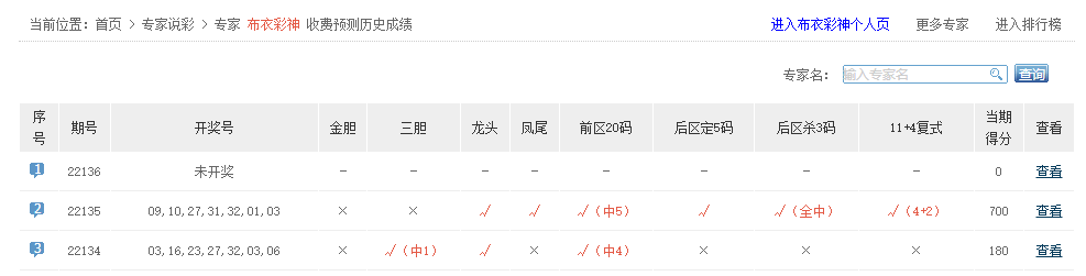 傻强看彩、手可摘星辰、大奖揭秘者命中5+0。