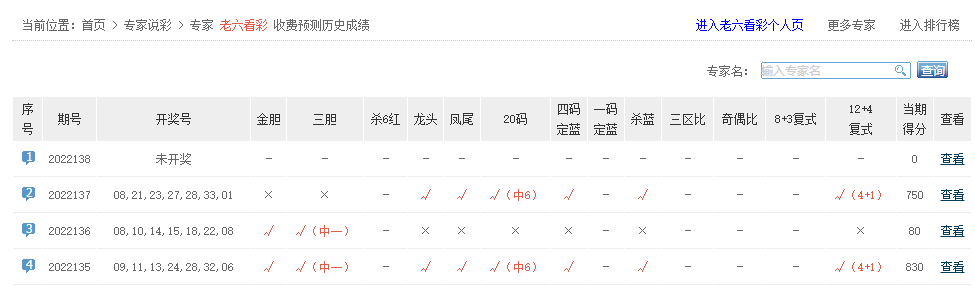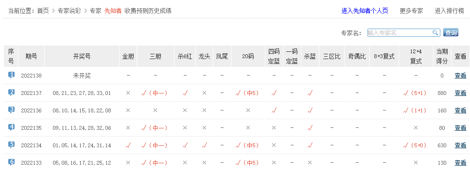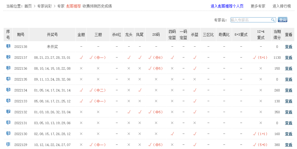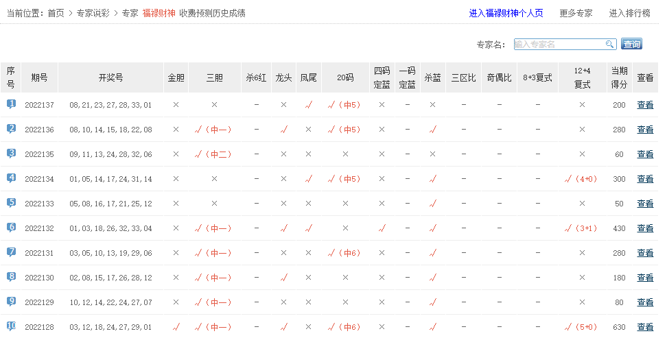 福禄财神、胆胆相依、锦鲤大王、红单霸哥、执笔点彩、彩店专员、烈焰推荐、月月中奖不是梦、欢声和笑语、司徒摘星、彩迷砖家、想的太多、圣地小石头、东方红太阳、风云榜、好看点等专家命中5红。