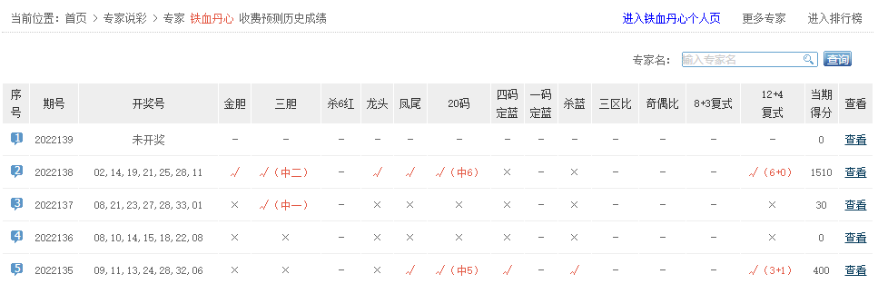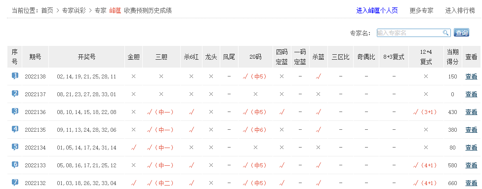 峰蕴、双色中彩、金牌预测、彩票打工仔、彩民聊彩、李美眉、龙行彩市、彩诸葛、君辉定胆、举头望明月、天机道人等专家命中5红。