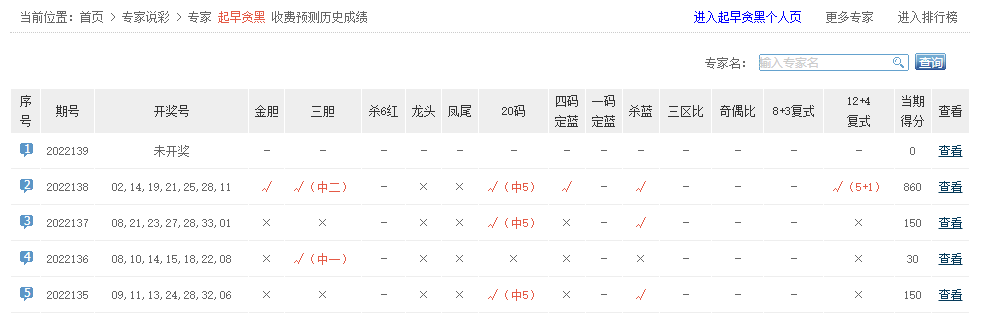 起早贪黑、步步高彩票、太乙真人12+4命中5+1;彩店专员、彩色之梦、彩神子、好运一直在等专家中5红1蓝。
