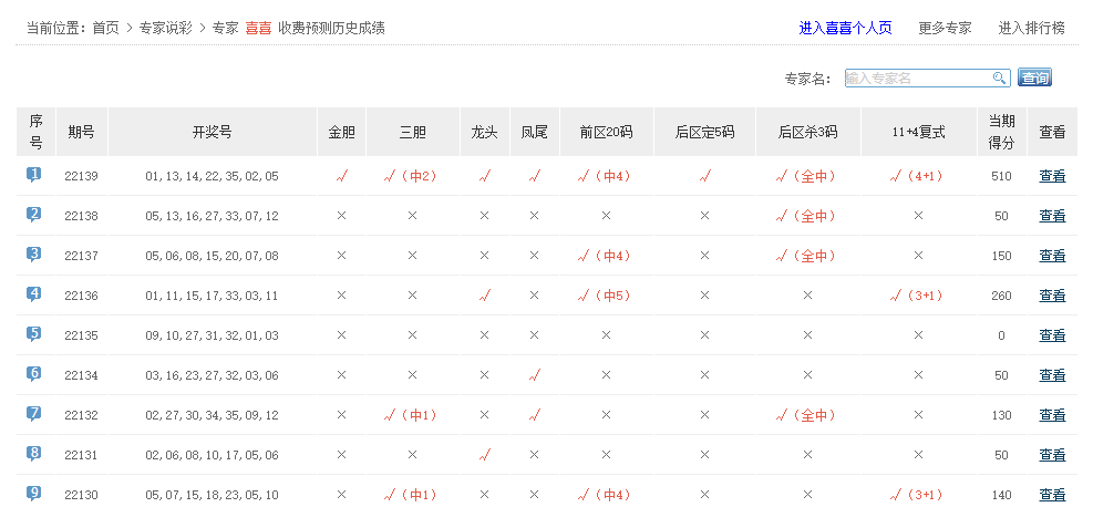 喜喜、突击手159、乐小星、wdg57859、经典彩老、南昌之星、一切看天意、封神子、动彩乐命中4+2。