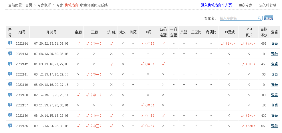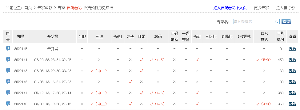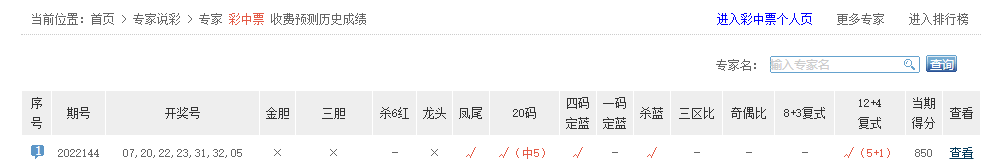 律妈看彩、清风道人、彩票天花板、易经荐胆、彩票龙、程雷峰本疯、天天红单、胆码天尊、13055等专家命中5红。