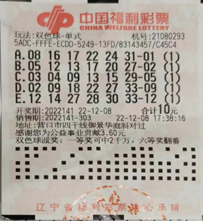 这次中奖的彩票是自选单式票,开奖期是2022141期,汪先生中得的这个二等奖是营口福彩在2022年双色球大派奖活动中第四次中出双色球二等奖。奖金257603元。