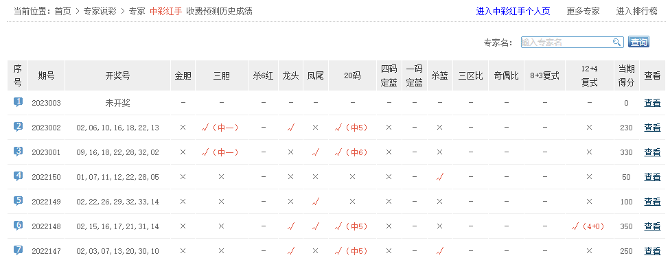 中彩红手、乐小星、笑看天涯、东南亚先知、雪山白狐、九桐、安逸闲、哥德巴赫、四季恋哥、峰蕴等专家命中5红。