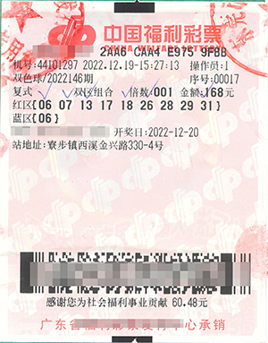 2022年12月20日福彩双色球第2022146期开奖,全国共中出9注双色球一等奖,河北、辽宁、江苏、广东、广西、云南各中出1注,四川中出3注,单注奖金650万多元。经检索,广东中出的1注一等奖花落东莞市寮步镇44101297销售网点,中奖彩票是一张9+1复式168元自选票,总奖金656万多元。