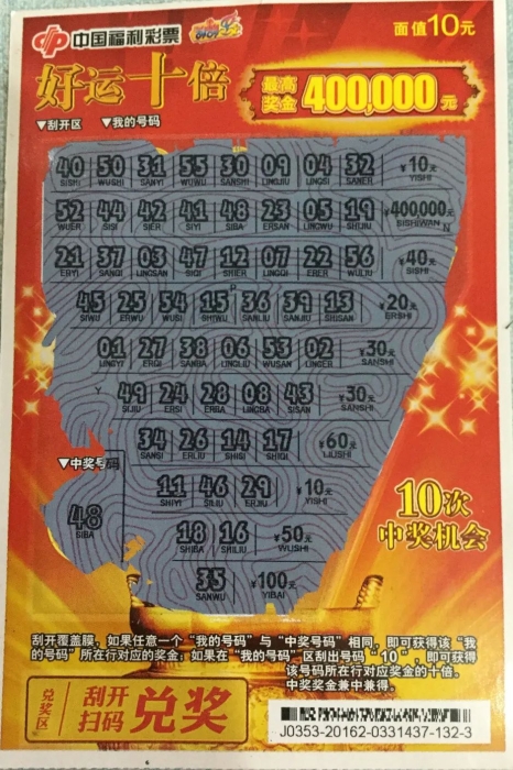 “好运十倍”送惊喜 昌黎小伙刮中40万元