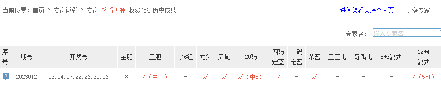 笑看天涯、神照、勤能补拙、最美彩票、龙飞凤、紫火如意、超哥出山等专家中5红1蓝。