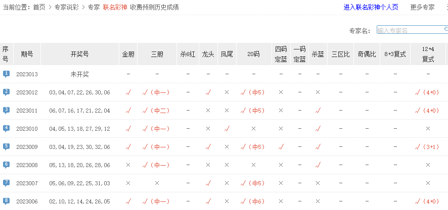联名彩神、笑笑财神、梦之克拉、每天出彩6、周易神胆、澳门杀手等专家名字5红。