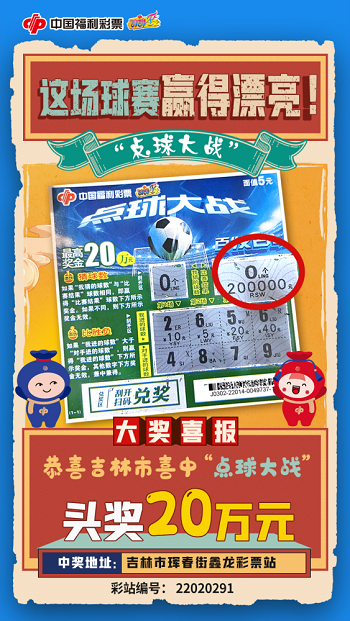 2月17日,吉林市珲春街第22020291号福彩销售网点传来喜讯,站内彩民化身幸运“锦鲤”,惊喜刮出福彩即开票“点球大战”20万元头奖!