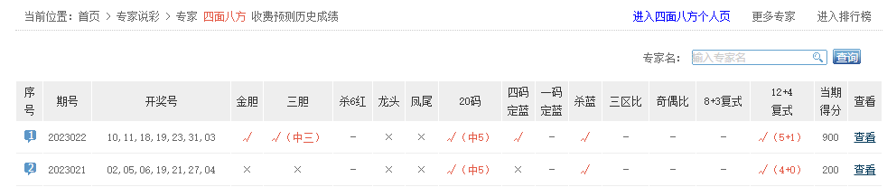 四面八方复式12+4命中5+1;面气灵、深圳湾业主等专家中5红1蓝。