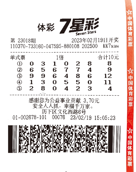 2月19日,中国体育彩票7星彩第23018期开奖,中奖号码2 8 0 4 2 3 + 4,全国共出一等奖1注,济南购彩者幸运爆棚,凭借一张机选5注的10元单式票,独中500万元幸运大奖。