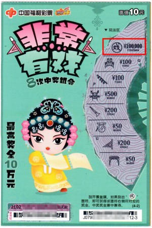 即开型福利彩票“非常有戏”(10元票)于2月底在江门市上市销售,凭借着4款卡通国潮戏曲票面设计、8次对图符中奖机会、小奖多中奖体验好的特点,成功圈粉无数彩民。