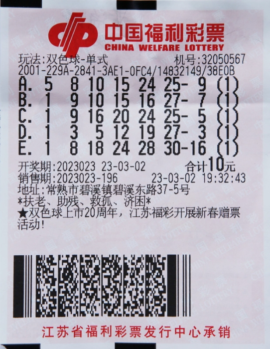 其中幸运的苏州彩民则花费10元,复制了前一次购买的5注双色球彩票,其中第1注号码与当期开出的中奖号码完全一致,幸运收获奖金500万元,该张彩票于3月2日19时32分43秒出票,幸运站点为苏州常熟市碧溪镇碧溪东路37-5号、编号32050567福彩投注站。