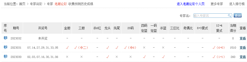 老谢论彩复式12+4命中6+0。