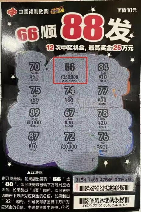 合肥彩民又中奖了!3月1日合肥彩民喜中“66顺88发”一等奖25万,时隔两周,“66顺88发”25万大奖又来啦!