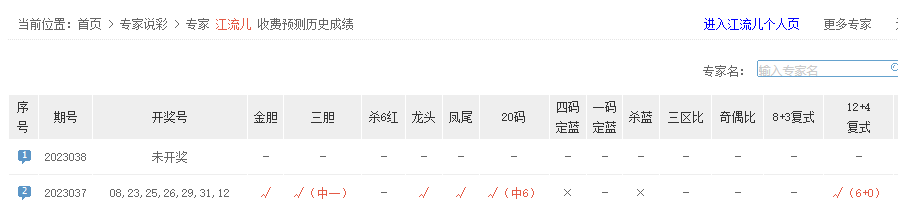 江流儿复式12+4命中6+0;图图看彩、我们的一生、双保险、天赐彩民、金牌预测、博彩通、不吃胡萝卜、彩华横溢、彩神通9、东方人等专家命中6+0。