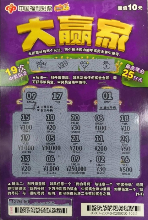 有这样一种彩友,双色球、七乐彩、3D、快乐8,总是能展现真正的技术,刮刮乐也经常斩获百元甚至千元奖金。近日,济南市福利彩票中心就迎来了这样一位彩友,他不仅是位老彩友,更被熟识的福彩业主和彩友们尊为“六边形战士”!并且值得庆祝的是,他还喜中近期热卖的刮刮乐“大赢家”一等奖25万元!