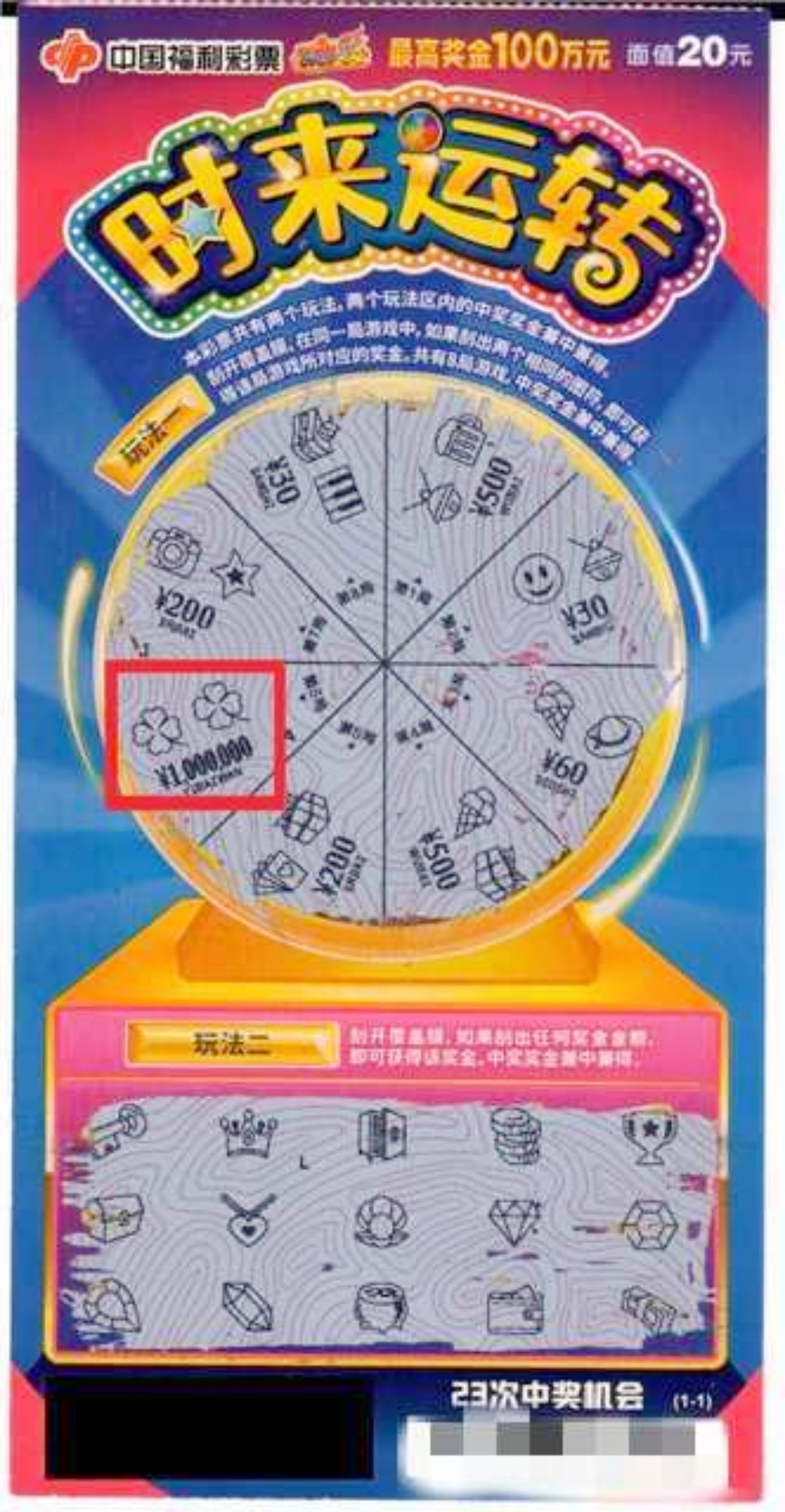 当时老板跟朱小姐说道,“我们的时来运转20元剩最后两张,要不要试试手气?”朱小姐随后买下两张“时来运转”当场刮开。第一张就中了20元,当刮开第二张时,夫妻俩都不敢相信自己的眼睛,把彩票拿回家反复比对才肯定自己中了百万大奖。就这样朱小姐怀着意外又激动的心情过完周末,周一在丈夫陪同下来到珠海市福彩中心兑奖。