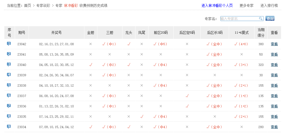 阿星推荐、素雅红、全民彩神、奶牛爱吃糖、步步高彩票、大众彩彩博弈、火狐狸看彩、渐冻彩迷、纵横驰骋、神彩奇缘、金牌预测中4+1。