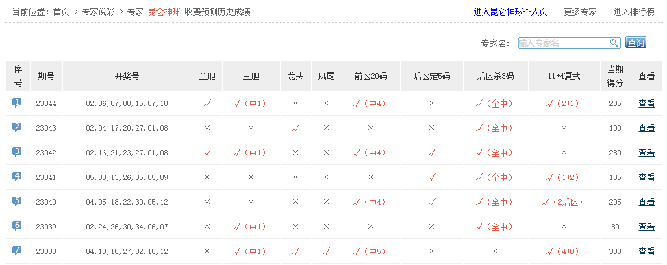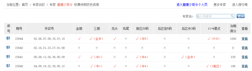 曾康少司令、红单第一人、突击手159、中华之胆、龙马精彩中金胆、财神再来、顺泽恒通、老佛爷天下中5+1。