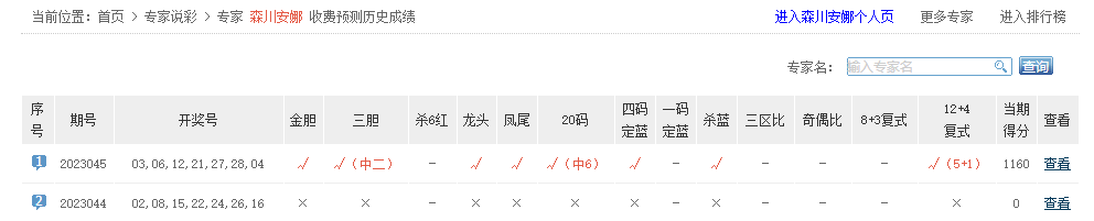 森川安娜、彩灵通、预测大神命中一等奖,12+4中5+1。
