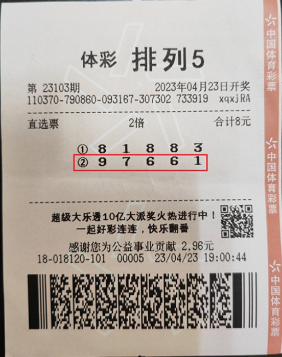 五一小长假马上就要来了,你的旅游安排上了吗?如果这时候中个彩票大奖,那就不用为旅行资金而犯愁了。日照购彩者秦先生(化姓)就是这么幸运,五一放假前夕喜中排列5第23103期一等奖2注,奖金20万元!