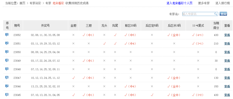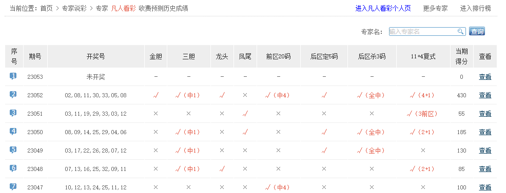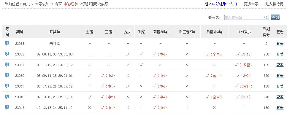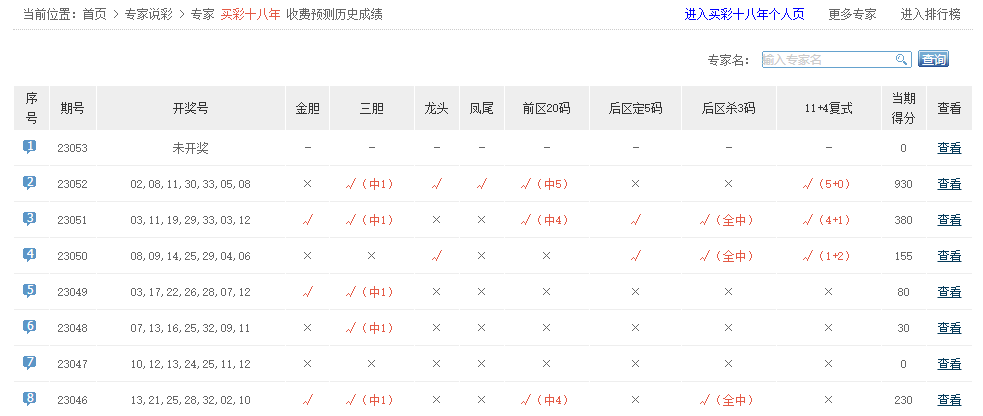 凡人看彩、彩满楼、狄格拉、天仙配、有派有期待、大头菜不愁卖、乐透话事人、虎星高照中4+2。