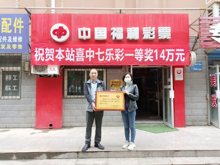开奖次日5月6日,宝鸡市福彩中心工作人员赶赴大奖诞生地,为幸运投注站颁发喜报奖牌,鼓励业主销售员再接再厉,为彩民做好服务,为公益事业增福添彩。