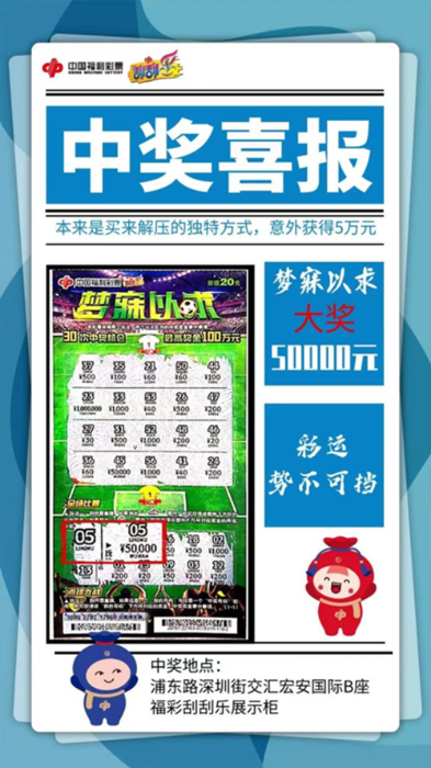 值得一提的是,这不是22060120号福彩销售网点第一次中大奖了,早在2022年2月,该站就中出过福彩刮刮乐“爱拼才会赢”头奖30万元。得知彩站再中大奖,站主鞠先生高兴地不得了,第一时间张贴喜报,让周围的彩民都来沾沾喜气。