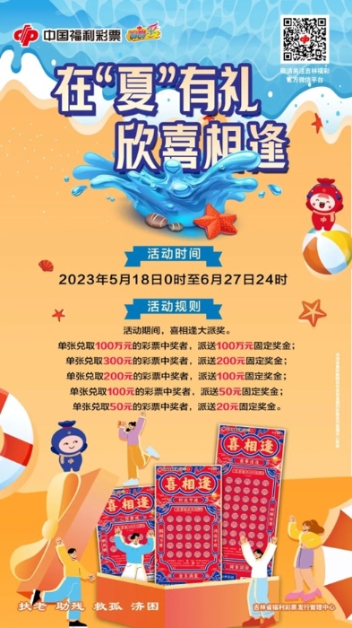 活动期间,对即开票“喜相逢”系列游戏100万元、300元、200元、100元、50元奖级的中奖彩票进行派奖。单张兑取100万元的彩票中奖者,派送100万元固定奖金;单张兑取300元的彩票中奖者,派送200元固定奖金;单张兑取200元的彩票中奖者,派送100元固定奖金;单张兑取100元的彩票中奖者,派送50元固定奖金;单张兑取50元的彩票中奖者,派送20元固定奖金。