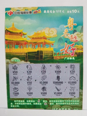 福彩刮刮乐新票“粤来越好”5月在广东隆重上市,广东福彩倾情打造的2023年“粤来越好”即开票1200万派奖营销活动同步闪亮登场,掀起新一轮刮彩热潮。2023年5月12日0时起,凡在广东省(不含深圳)内购买面值10元的“粤来越好”即开票游戏,且单张彩票中得1000元或50元奖级的中奖彩票,可参加派奖。