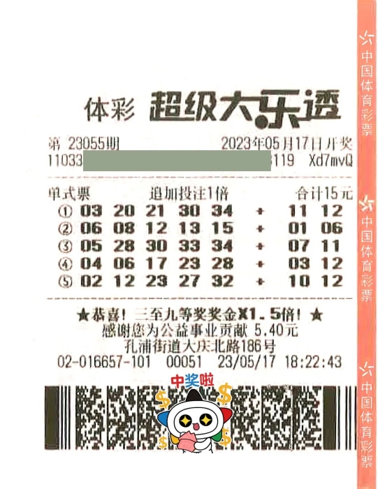 5月17日,体彩大乐透第23055期开奖,当期我省宁波购彩者喜中1注大乐透追加一等奖,符合“追加投注且单期购彩金额15元及以上”的派奖条件,单票奖金2099万元(含派奖)。这位幸运儿正是李先生。