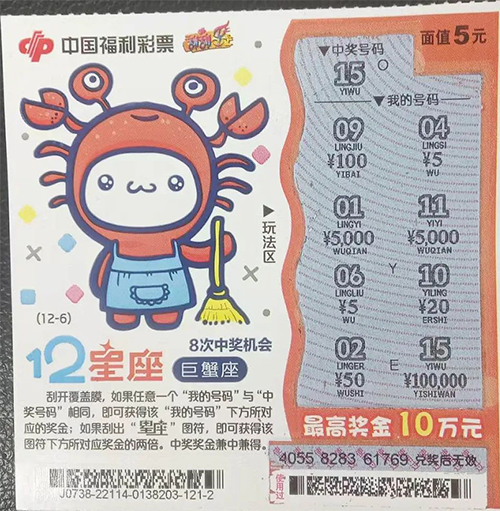 据悉,中奖者程先生(化姓)在本溪游玩期间,除了打卡几大特色景区,也会到市中心转转。5月18日当天,他恰好路过位于平山区法院斜对面的福彩23号站,作为一名老彩民,虽然身处他乡,但只要看到福彩站都倍感亲切,于是他决定试试手气。当时他购买两张刮刮乐“12星座”玩法,没想到这一刮竟喜中该玩法一等奖,奖金10万元。喜出望外的程先生随即到市福彩中心办理了兑奖手续。