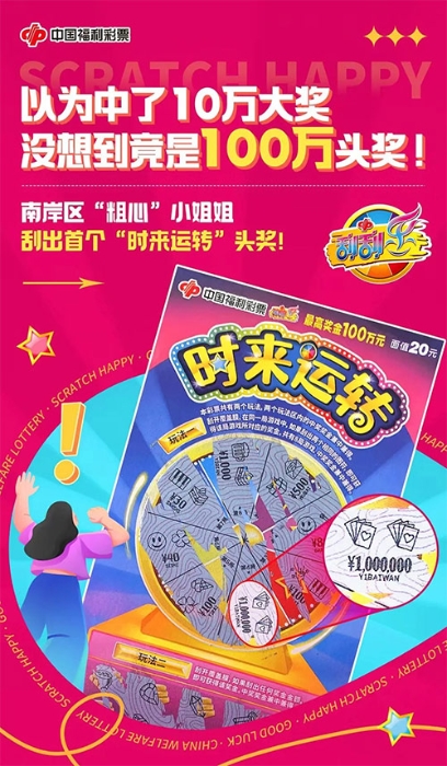 本来以为自己中了10万元刮刮乐大奖,没想到兑奖时竟被告知是100万!近日,南岸区彩民黎女士(化姓)在父亲的陪同下来到市福彩中心办理了兑奖手续,领走了我市刮刮乐新票“时来运转”首个头奖100万。