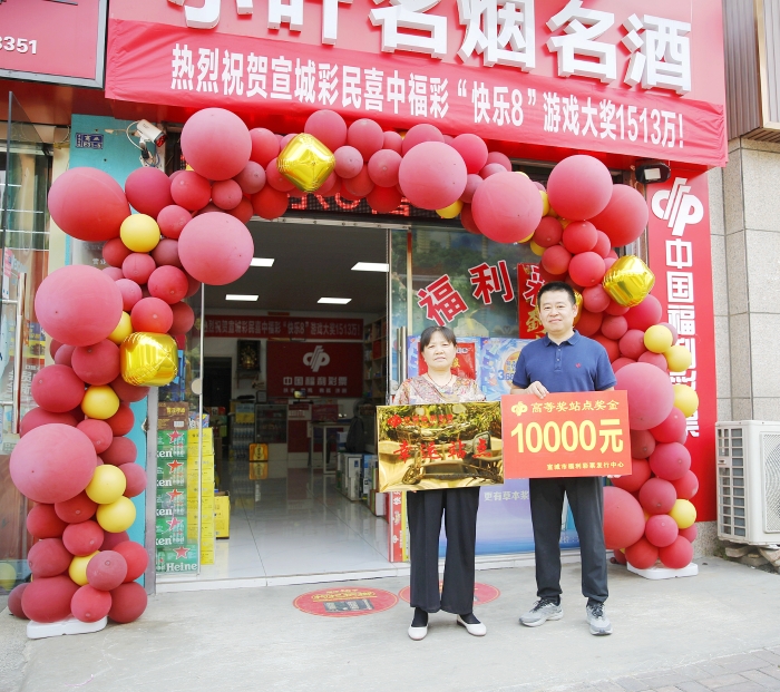 2023年6月13日,宣城彩民喜中快乐8游戏1513万元大奖,6月14日上午,中心工作人员便第一时间赶赴位于宣城市林海路开达名城的34150002号福彩代销网点了解中奖信息,只见车子还未开近,便看到该网点门口早已聚集了不少群众,欢声笑语从熙熙攘攘的人群中传出,站主叶莉更是显得分外兴奋。