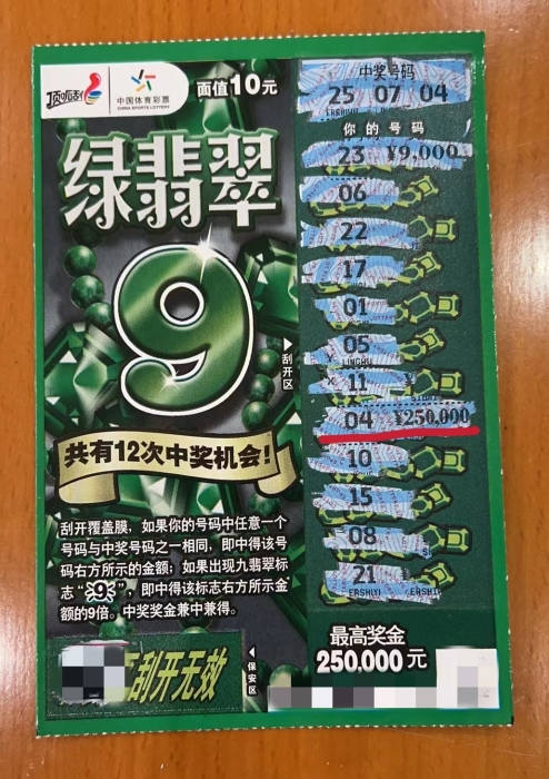 中奖之际王小姐的喜悦之情溢于言表,兴奋地拿着中有25万的“绿翡翠9”在体彩展示体验中心店铺门前合影留念,并于6月14日上午携中奖彩票及身份证前往市体彩中心兑奖处领取了25万幸运奖金。