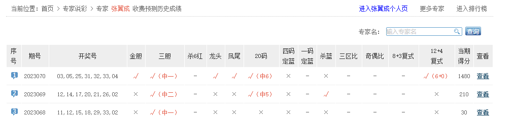 张翼成复式12+4命中6+0;同君醉、玩彩休闲、允爺、乾坤坎离等专家同中6红。