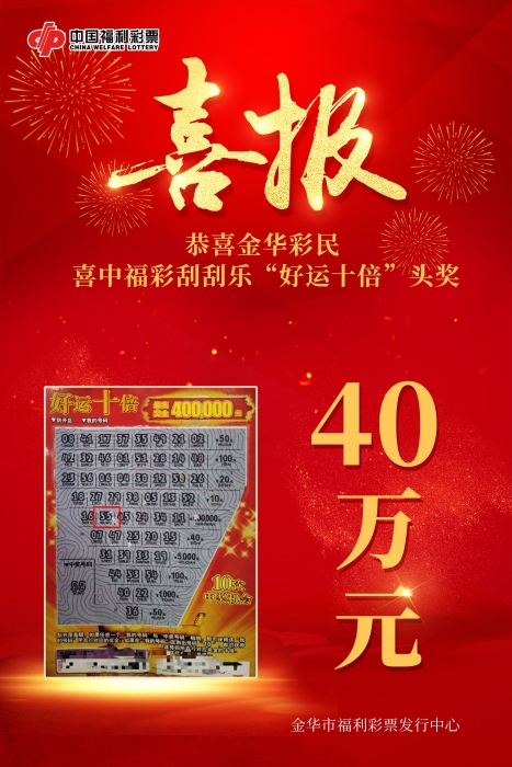 戴女士是金华兰溪人,平时夫妻俩勤勤恳恳工作,较为忙碌。丈夫空闲时分会买几张福彩双色球,而戴女士则较少接触彩票。不过前段时间在丈夫的影响下,戴女士开始接触福彩刮刮乐。恰逢端午节休息,又是双色球开奖日,戴女士陪同丈夫一起走进金华市白龙桥滨江小区营业房11号33075014福彩投注站购买双色球,想起妻子上次中得60元的好运,丈夫便让戴女士随便挑选,他请客买刮刮乐,戴女士开心地从一叠“好运十倍”中随机抽取了5张,没想到在第二张的第5行第2个号码中刮出了“中奖号码”“55”,中得头奖40万元。