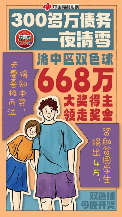 “感谢福彩,这笔奖金来得太及时了。”6月26日上午,渝中区彩民张先生(化姓)携妻子急匆匆地赶到福彩大厅,在办理双色球668万大奖的兑奖手续时,他感叹道:“有了这笔奖金,自己的生活终于能够重新回到正轨了。”