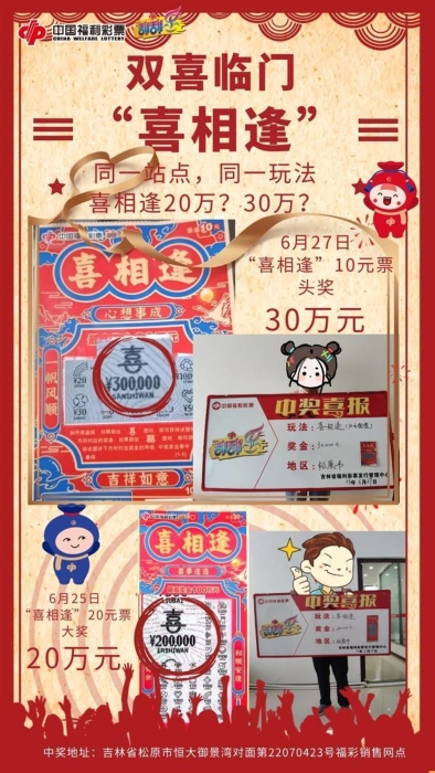 还记得6月24日,吉林省松原市恒大御景湾对面第22070423号福彩销售网点中出的30元面值“喜相逢”20万元大奖吗?