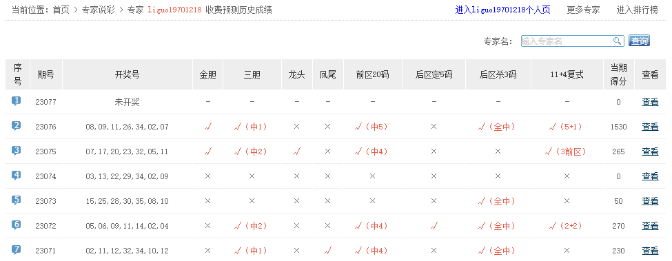 liguo19701218、赢利双收11+4中5+1;杨八妹中5+1。