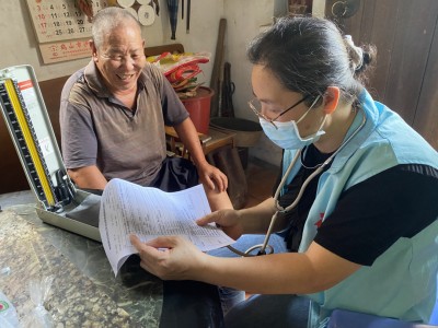 江门鹤山工作人员上门为老人作健康指导。(资料图片)通讯员供图