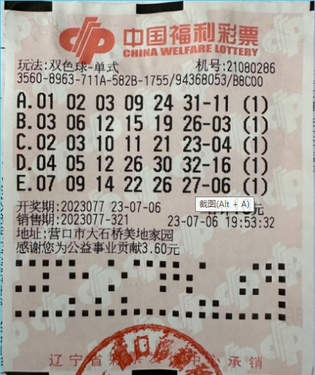 7月6日晚,福彩双色球第2023077期开奖,当期红球号码07、09、14、22、26、27,蓝球01。营口福彩第21080286号销售网点传出喜讯,该站售出的一张双色球单式彩票中得二等奖1注,奖金101,586元。