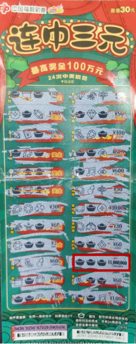 后来看到店里还剩4张“连中三元”,就想给全部包了。但是张岩没有一次全买,而是买一张刮一张,不想第一张就中了大奖。张岩说,他当时有些发蒙,数不明白究竟有几个“0”,看了彩票后面的玩法介绍,才恍然大悟,原来自己中了一等奖,奖金有100万!用张岩自己的话说,“发现中大奖后,手都是抖的”。