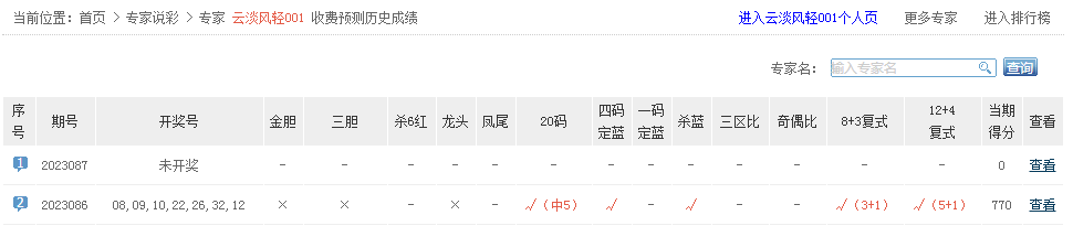 云淡风轻001复式12+4中5+1;小宋荐蓝、独孤求中、彩桥梁等专家中5红1蓝。