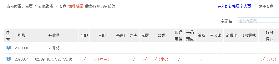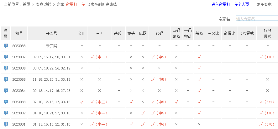 数字彩谜12+4命中6+0;狐假虎威、彪哥推荐、南部之星、分析大师、昆仑神球中6+0。