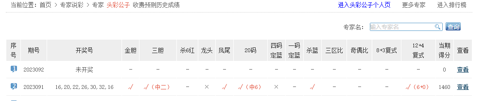 头彩公子12+4命中6+0;故乡人、实战高手、间隙的阳光、素雅红等专家同中6红。