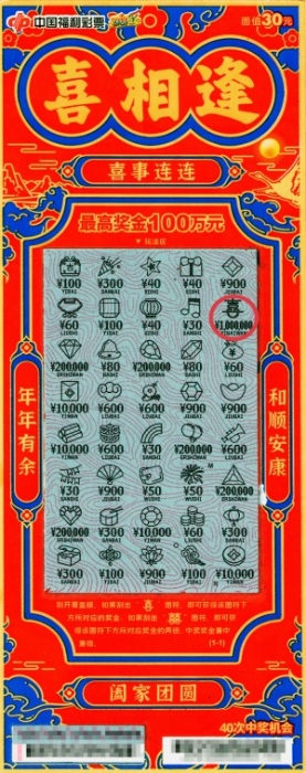 中奖当天,罗先生和朋友们聚会,因有个朋友堵车晚到,罗先生提议先去附近的福彩销售站点玩刮刮乐,边玩边等。在福彩销售站点,罗先生一眼相中“喜相逢30元”,皆因票面上“喜事连连”“年年有余”“和顺安康”的美好祝福很合心意。